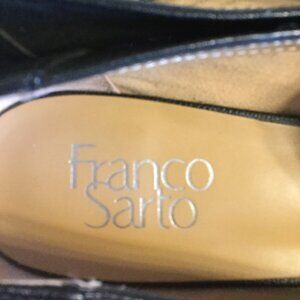 Franco Sarto pointed toe leather uppers silver trim on heel. Size 8M black