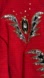 • Vibrant red knit with gold, silver, and black sequin embellishments