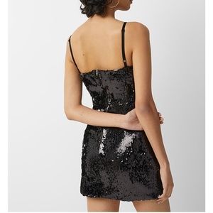 Franco (sold by Simons) black sequins spaghetti straps sleeveless mini dress new with tags. Sequins on stretch satiny lining, V-neck on structured boning, adjustable straps, back long zip closure, slim fit, perfect party dress, very trendy in 2024 as everything sparkly and shiny. Marked size M. All measurements are approximate and taken with the garment laying flat : Armpit to armpit 15.5" Waist 13’’ Total length from middle of chest 22’’. This item comes from a smoke free, pets friendly home. Recycled bags/box used when possible. Please, let me know if you'd like any additional pictures and/or measurements or other info. Thanks for watching!