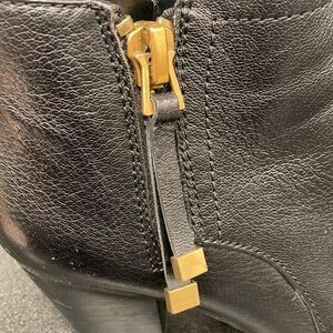Franco Sarto Black Heeled Almond Toe Double Sided Gold Zipper Diana Bootie
