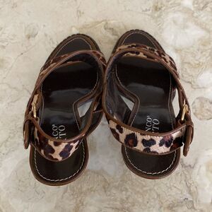 Franco Sarto Cheetah Leopard Print Pony Hair Strappy Heeled Sandals