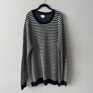 Frank And Oak Crochet Knit Sweater Round Neck Striped Pattern Navy Blue White XXL : Used and in good used condition