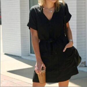 Frank And Oak Button Down Short Sleeve Mini Dress with Front Tie