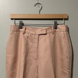 Excellent condition. One minor mark near zipper (see photo). Dusty rose pink. No functional pockets. Zipper fly with button clasp closure. Linen & Tencel blend. Cuff.
