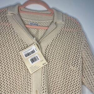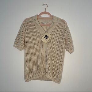 Frank And Oak Open-Knit Button-Up Polo Shirt | Recycled Cotton Blend | Size M |