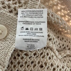 Breezy, breathable, and effortlessly cool—this open-knit polo-style shirt from Frank And Oak brings a refined texture to your warm-weather wardrobe. Crafted from a sustainable recycled cotton and organic cotton blend, it features a short sleeve silhouette, spread collar, and full button front. The airy, net-like knit adds visual interest while remaining ultra-light and layerable. A minimalist’s dream for pairing with denim, wide-leg linen pants, or over a bralette or swimsuit.