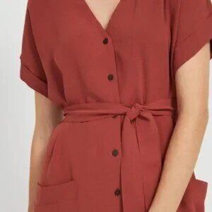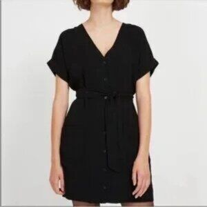 Frank And Oak Women's Button Down Short Sleeve Mini Dress with Front Tie Size S