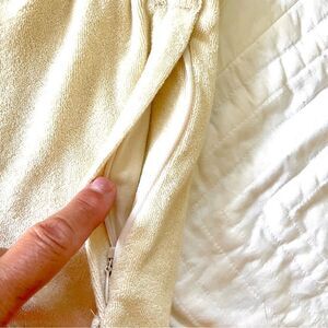 Creamy color, two side pockets with zippers, and side slits. Terri Terry cloth.