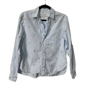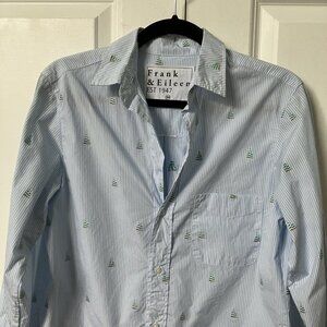 Frank & Eileen Silvio Top Womens XS Blue Stripe Sailboat Coastal Italian Cotton