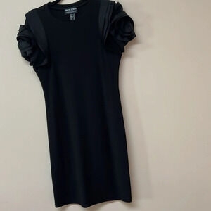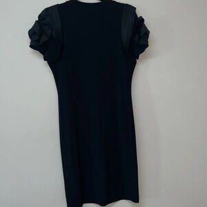 Frank Lyman Black Fluttered Ruffles Floral sleeves cocktail Lycra dress Sz 8