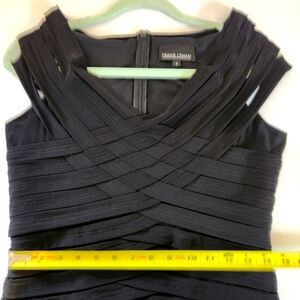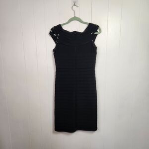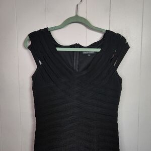 Frank Lyman Black Shutter Bandage V-Neck Cap Sleeve Sheath Dress Stretch Size 8