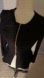 This elegant black women's jacket features a sleek design with a gold zipper, perfect for adding a touch of sophistication to any outfit.slightly puffed shoulders. Snatched waist line.55% polyester