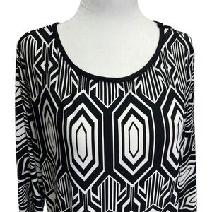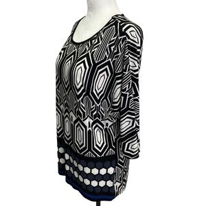 Frank Lyman Black/White Geometric Print 3/4 Sleeve Tunic Top Size 14