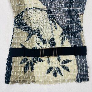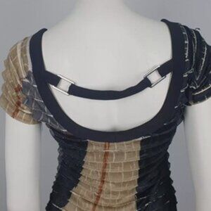 Frank Lyman Blk/Tan Ruffle Butterfly Short Sleeve Top V Neck/Scoop Back womens Size 6