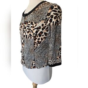 Frank Lyman Design Animal Print Cheeta Mobwife Abstract Size 14 Cardigan