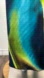 Elegant maxi dress with a smocked top. Features a vibrant blue and green pattern. Perfect for any occasion.