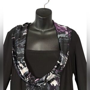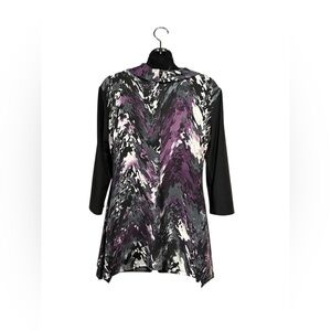 Frank Lyman Design, Chic Designer Tunic, Size 10, Black, White, Purple