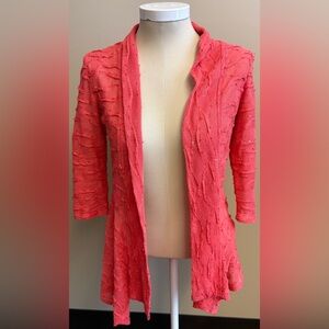 Frank Lyman Design Pink Sparkle Textured Drapey Open Cardigan women's size Small