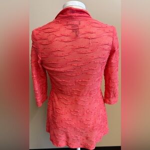 Tags: Frank Lyman Design Pink Sparkle Textured Open Cardigan women's size Small Frank Lyman Design pink crinkle cardigan textured open front sparkle layer long sleeve made in Canada high quality feminine elegant soft drape lightweight travel layer spring style office to dinner versatile topper glam layering piece summer wedding guest look statement pink cardigan workwear resort style brunch outfit special occasion coverup date night wrap vibrant pink stylish outerwear Canadian designer deals sale