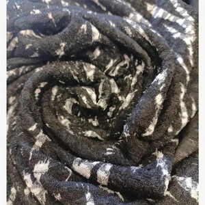 Black with white, this long sleeve offers plenty of stretch. A waterfall, open cardi featuring an asymmetrical hemline