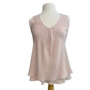Details: This listing is for a pre-loved pullover Layered Chiffon “V” Neck Soft Pink Tank Top by “Frank Lyman” in a size 16.
