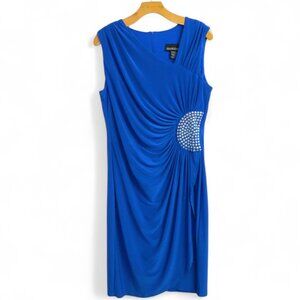 Frank Lyman Royal Blue Studded Rouched Holiday Party Cocktail Sheath Dress Sz14