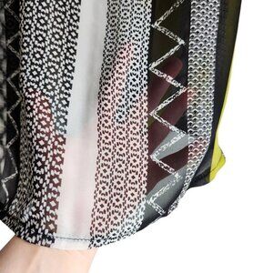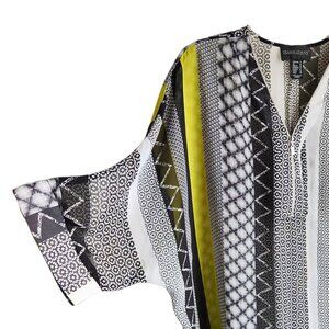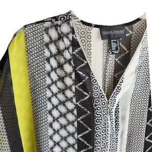 Frank Lyman Sheer Tunic Blouse | US 14 | Black White Lime Half Zip