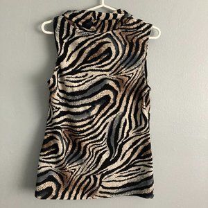 Frank Lyman Sleeveless Animal Print Top Belted Size 14