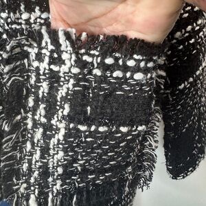 🔍 Keywords: tweed blazer, metallic detail, fringed trim