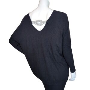 Frank Lyman pullover featuring a deep V-neckline in the front or a low, scoop-style back with silver bling detail.