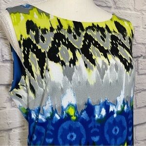 Frank Lyman Womens Geometric Multi Color Fitted Sheath Dress Size 10