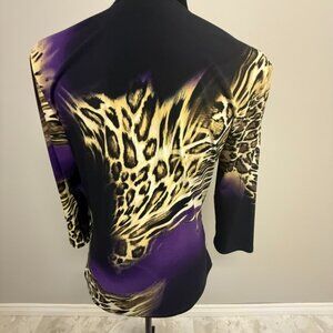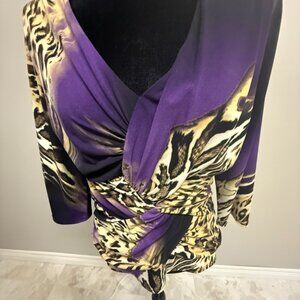Frank Lyman Wrap Blouse Purple and Animal Print EUC Size L (fits more like a medium) Beautiful fabric