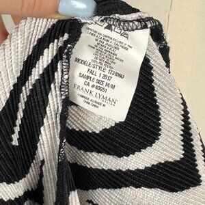 Bold zebra stripe scrunched tank from Frank Lyman’s Fall 2017 capsule in a scrunched material with black-and-white abstract zebra pattern and a flattering scoop neckline.