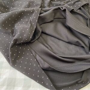 Black wrapped flattering dress with Incrusted silver mini beaded material. 3/4 sleeves feminine dress.