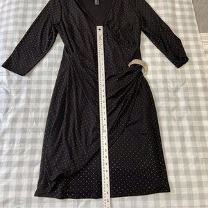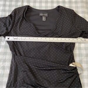 Frank Lyman black dress wrap beaded silver studd 3/4 sleeves flattering noir 12