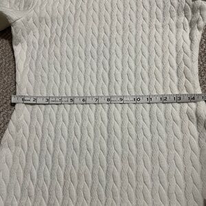 Bust 16, waist is 15 laying flat. Fabric is stretchy. I have attached pictures.