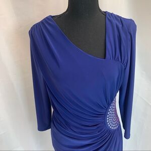 Frank Lyman royal cobalt blue ruched evening cocktail dress embellished Sz 10