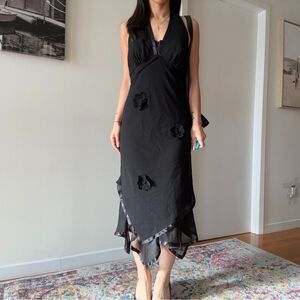 Frank Lyman Mesh Halter asymmetrical dress with flower trim