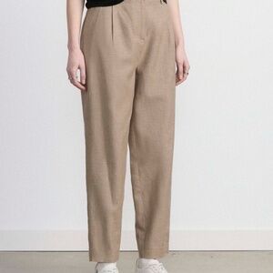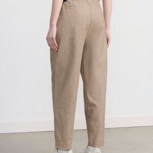 A tailored and elevated style designed with your comfort in mind. The Amelia pant features a roomy and flattering balloon fit that hugs the hips and leaves room for the thighs, a high waist, and an ankle-length hem. Tapered leg. Pleated at the front and at the waist. Made from a soft and stretchy blend of recycled fibres. Slash pockets at the front and fake welt pockets at the back. Hidden pocket inside the waistband to safely store your cards. Recycled button front closure with zipper. Belt loops at the waistband. Half-lined.