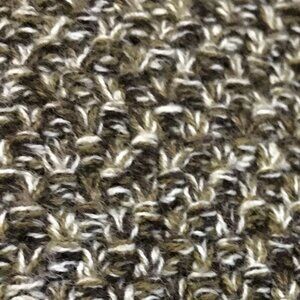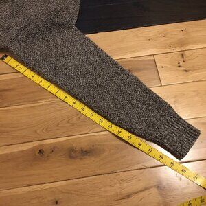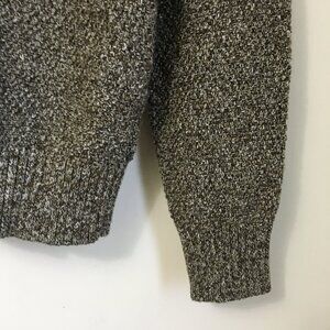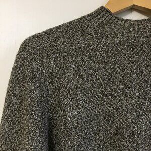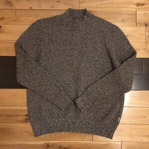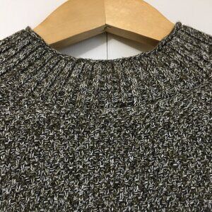 Very good preowned condition, mock neck, multicoloured (dark Aegean olive, brownish black and white knit sweater by Frank & Oak. With ribbed cuffs, hem and neck, this sweater is a timeless classic. It is super comfortable and although it is listed on their site as a men's, I definitely feel this is more of a unisex fit.