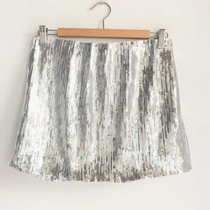45This is a Frank and Oak silver sequin mini skirt in size S, designed for plus-sized women.