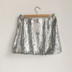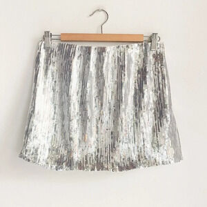 Frank + Oak Sequin Silver Metallic Sparkly Minis Skirt S