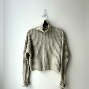 Frank + Oak grey Wool blend ribbed cropped oversized sweater