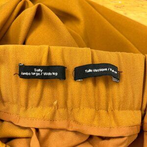 The Sally pants feature a fluid, wide-leg fit, high-rise, and full-length legs. Features an elastic pull-on waistband with drawstring. Two slash pockets on the sides.