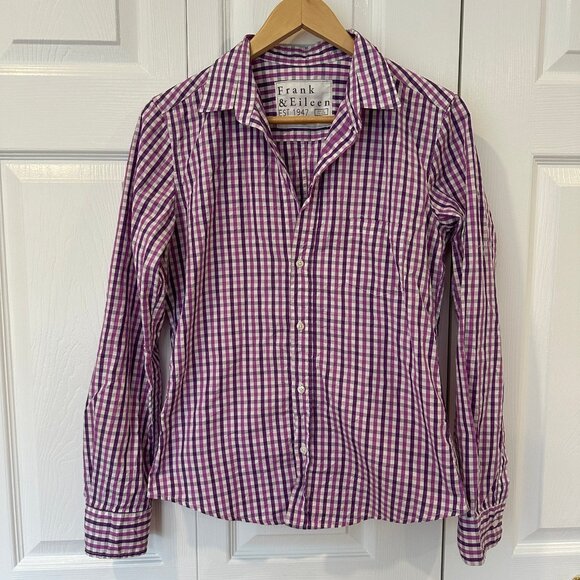 Frank and Eileen Purple Gingham Barry Long Sleeve Shirt Small 100% Cotton