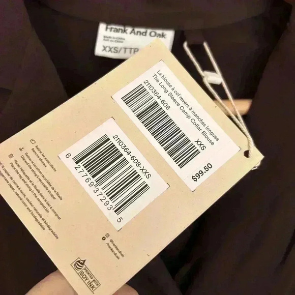 Frank and Oak Brown Long Sleeve Camp Collar Blouse Size XXS