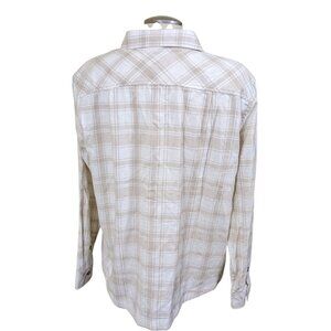 Frank and Oak Flannel Shirt Womens XL Plaid Beige Button Up Organic Cotton Soft
