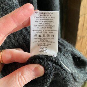 Fuzzy, soft knit sweater, made with a mix of wool, recycled nylon and recycled acrylic. Fits quite boxy, but comfortable.