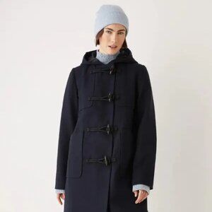 Worn once, like new condition. Fabric is a blend of recycled wool and recycled polyester. Lined. A very nice coat (I'm selling because I prefer a non-wool duffle coat in a different colour).