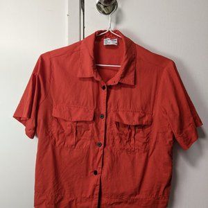 Short sleeve orangey-red shirt. Size XS. Worn a couple times, just not my colour. Lightweight linen blend.